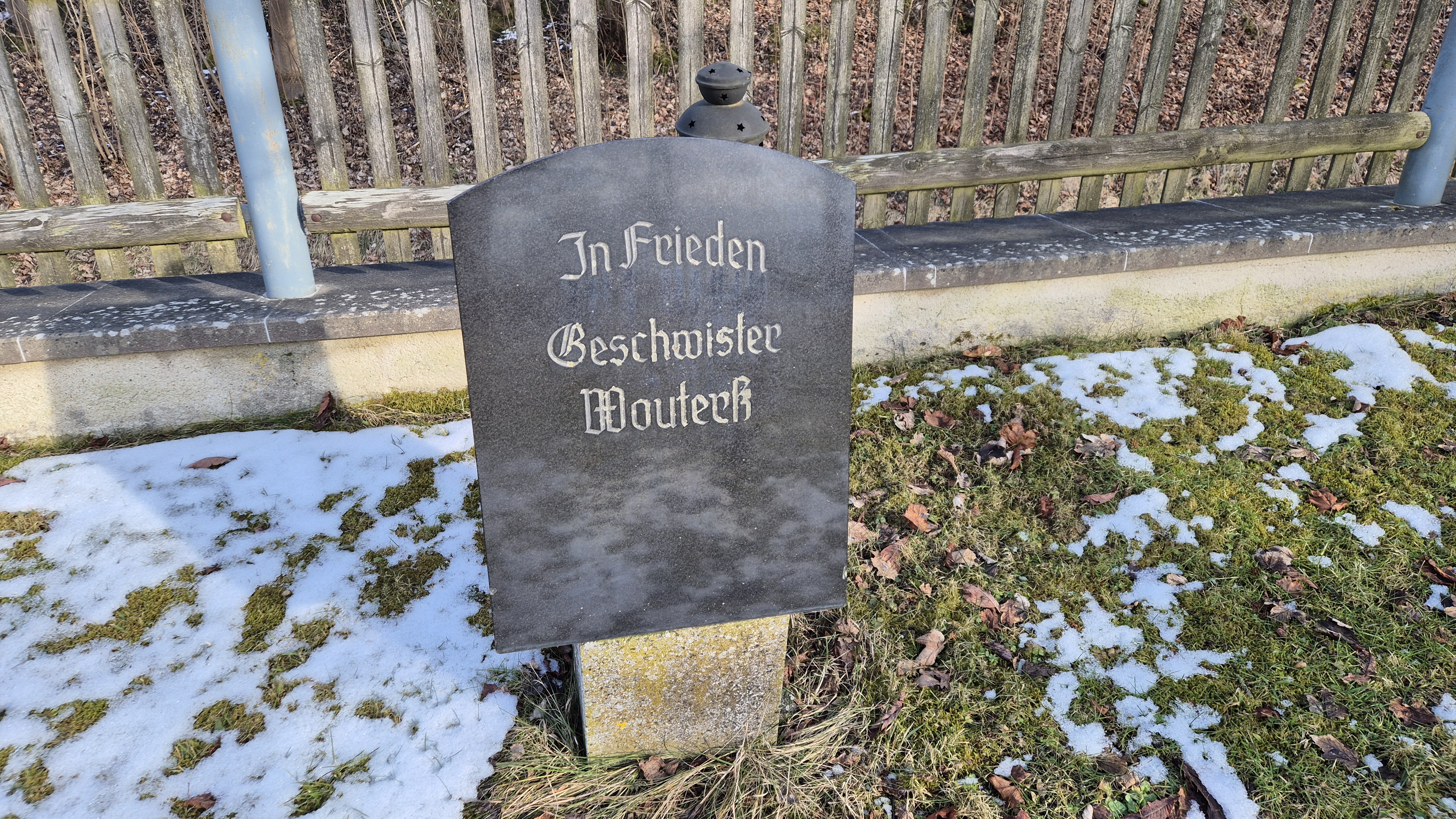 Auf dem Landwüster Friedhof, in der südöstlichen Ecke, nahezu unter der großen Kastanie steht ein schlichter, schwarzer Grabstein ohne komplette Namen und Daten. Zu lesen ist nur: In Frieden - Geschwister Wouters.