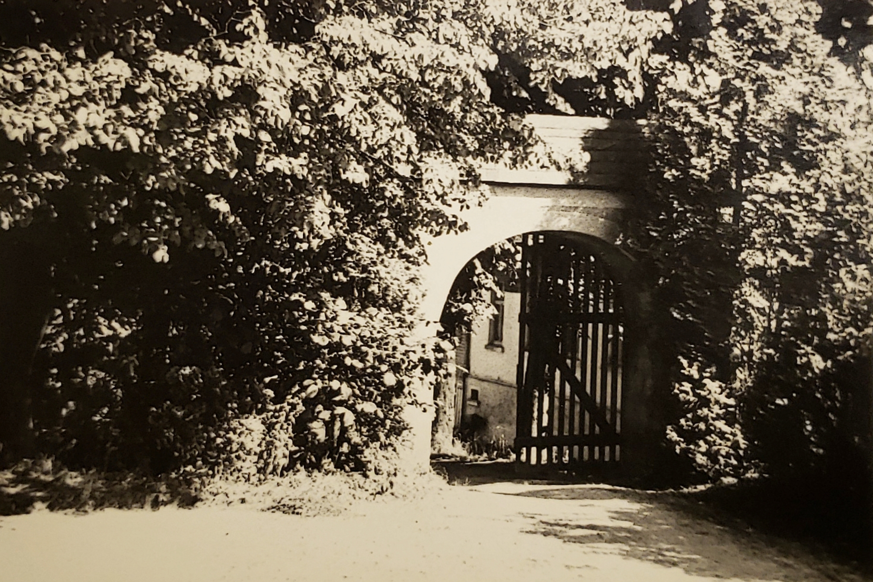 Hinweis zum Medium: Blick durch den Eingang zum Kirchgelände auf das Schwarze Ross