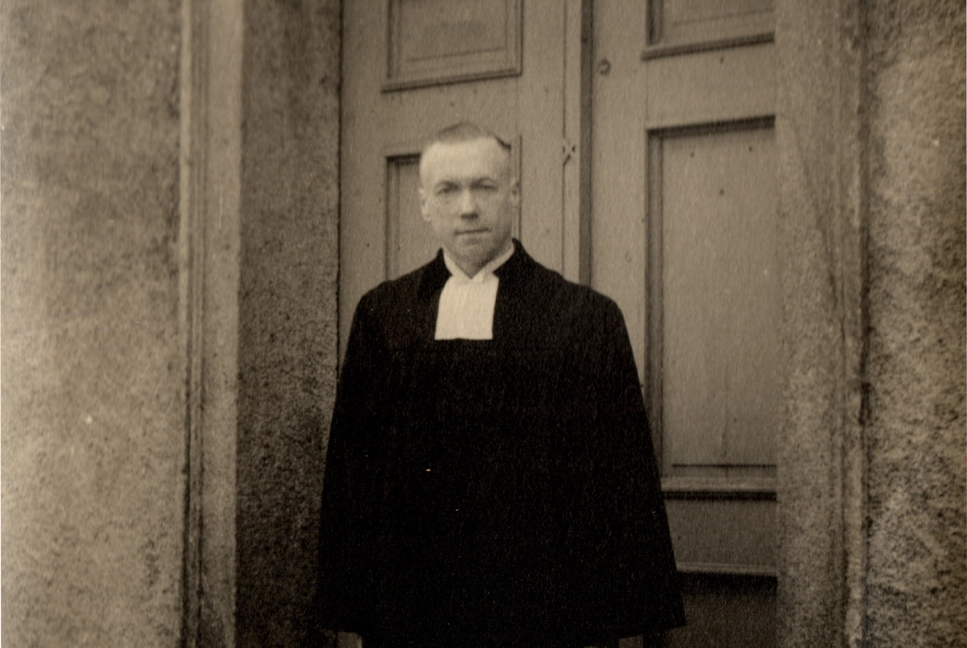 Hinweis zum Medium: Pfarrer Pelling vor der Kirche
