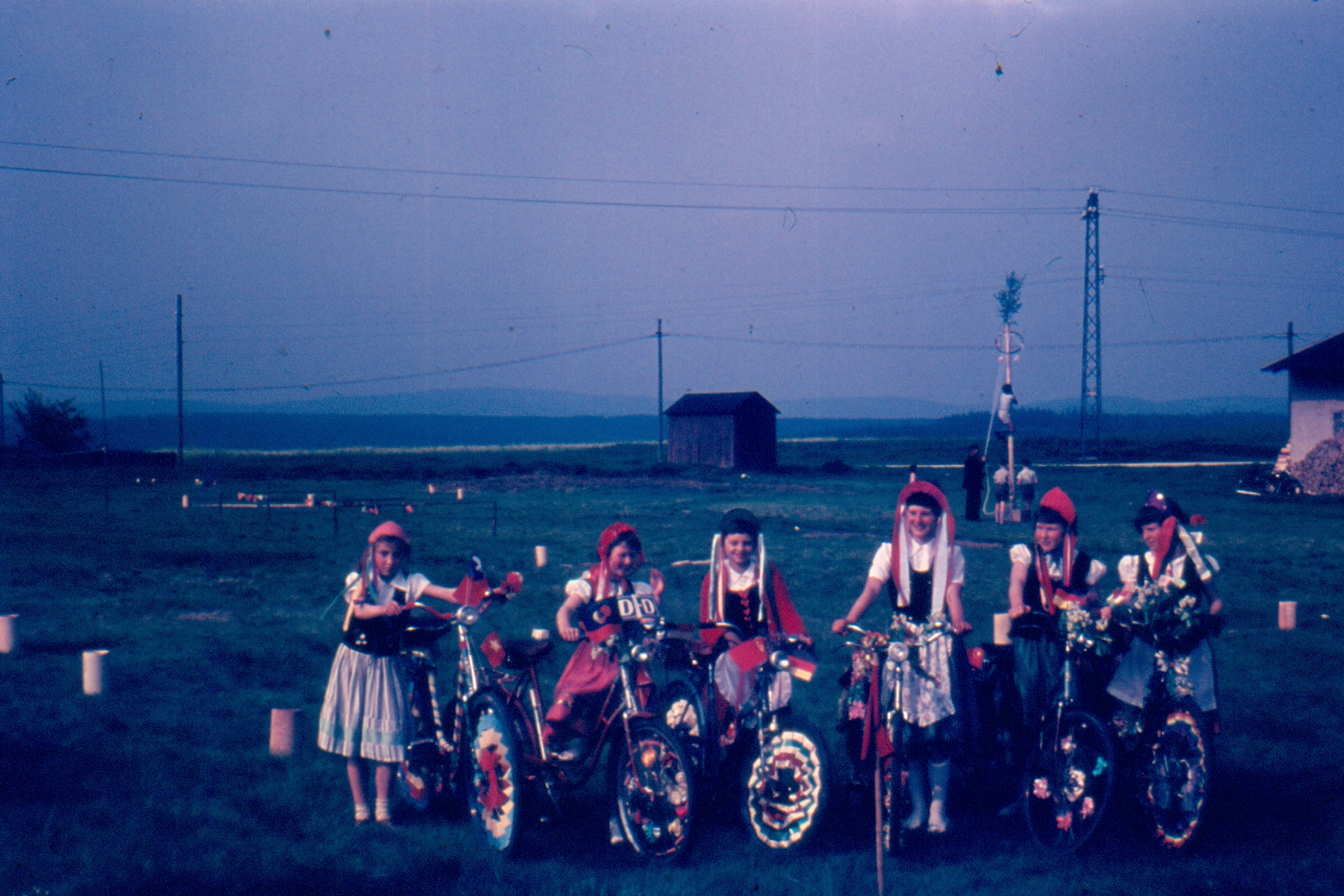 Hinweis zum Medium: Mädchen mit geschmückten Fahrrädern