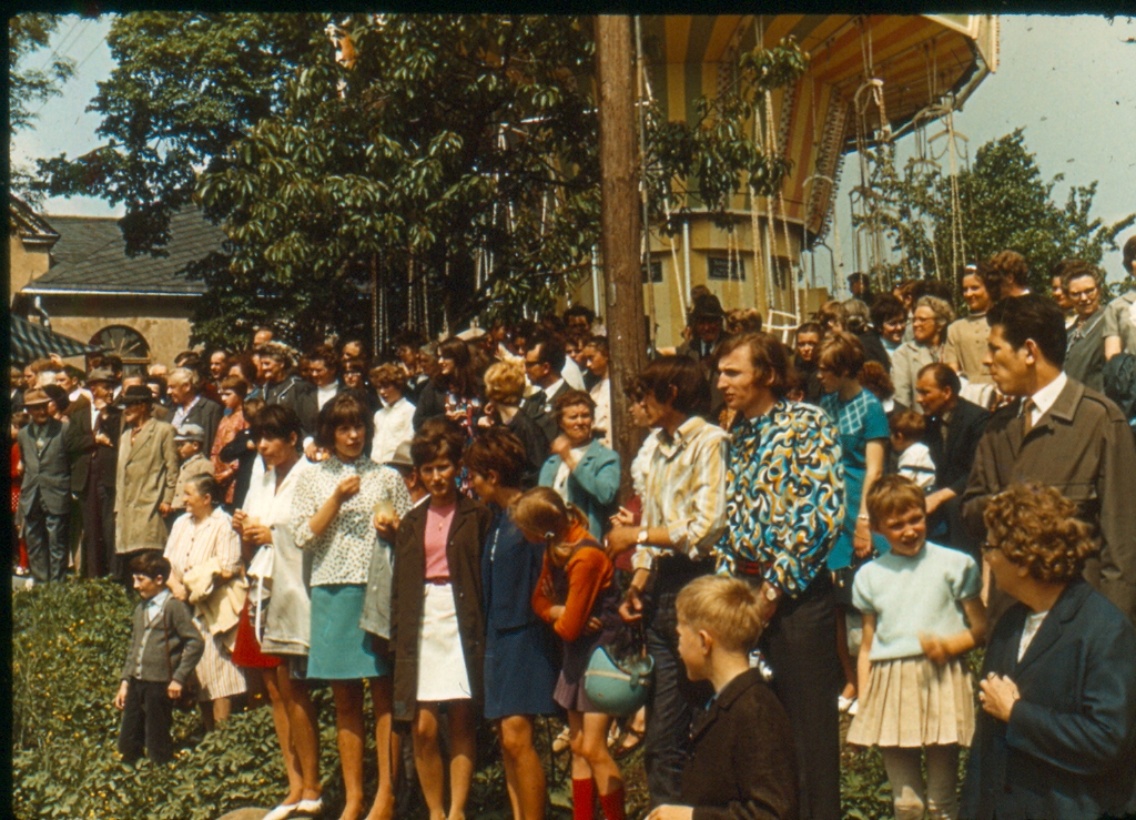 Hinweis zum Medium: Menschenmassen vor Ketten-Karussel