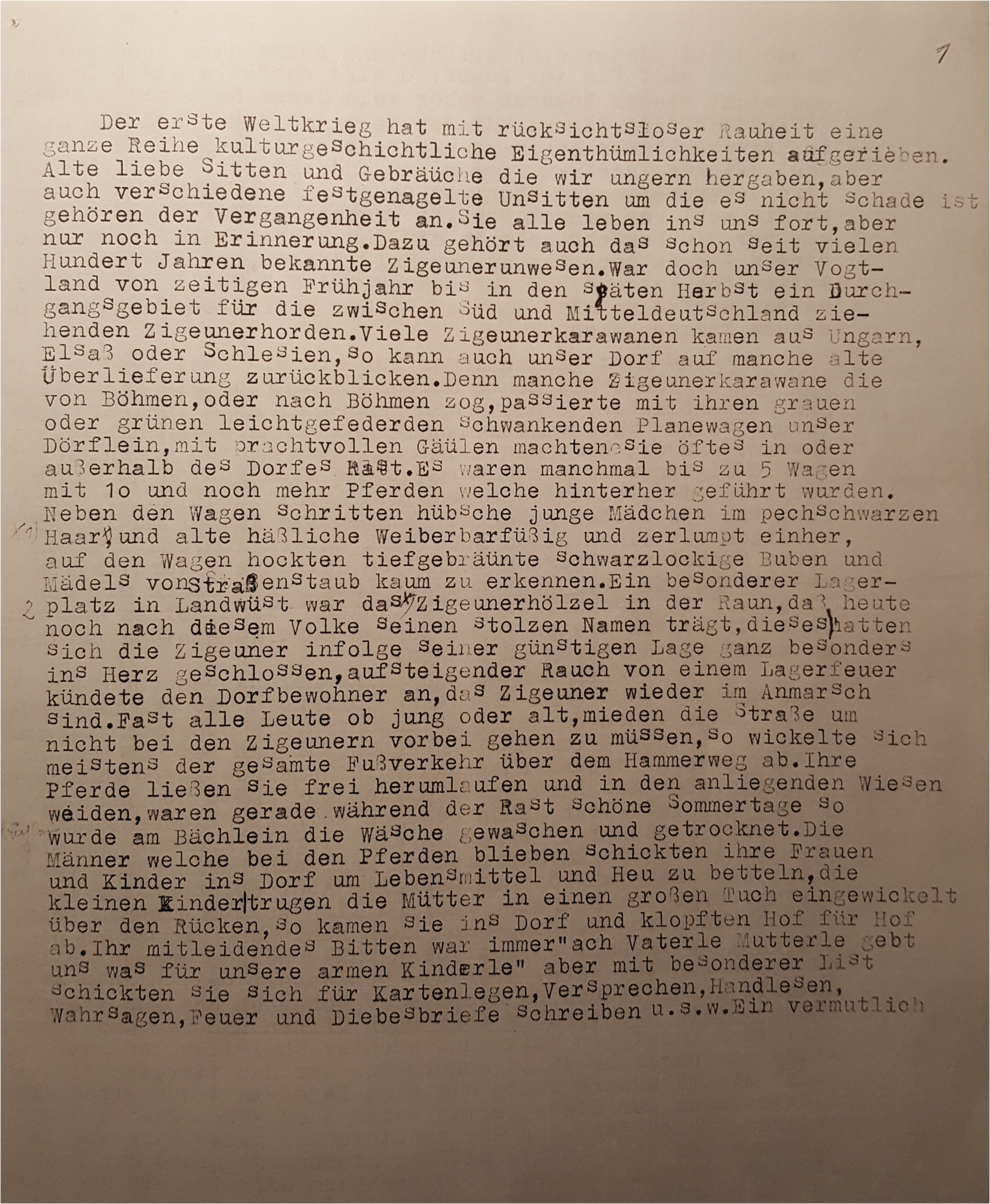 Bericht zu Erlebnissen mit durchziehenden Zigeunern