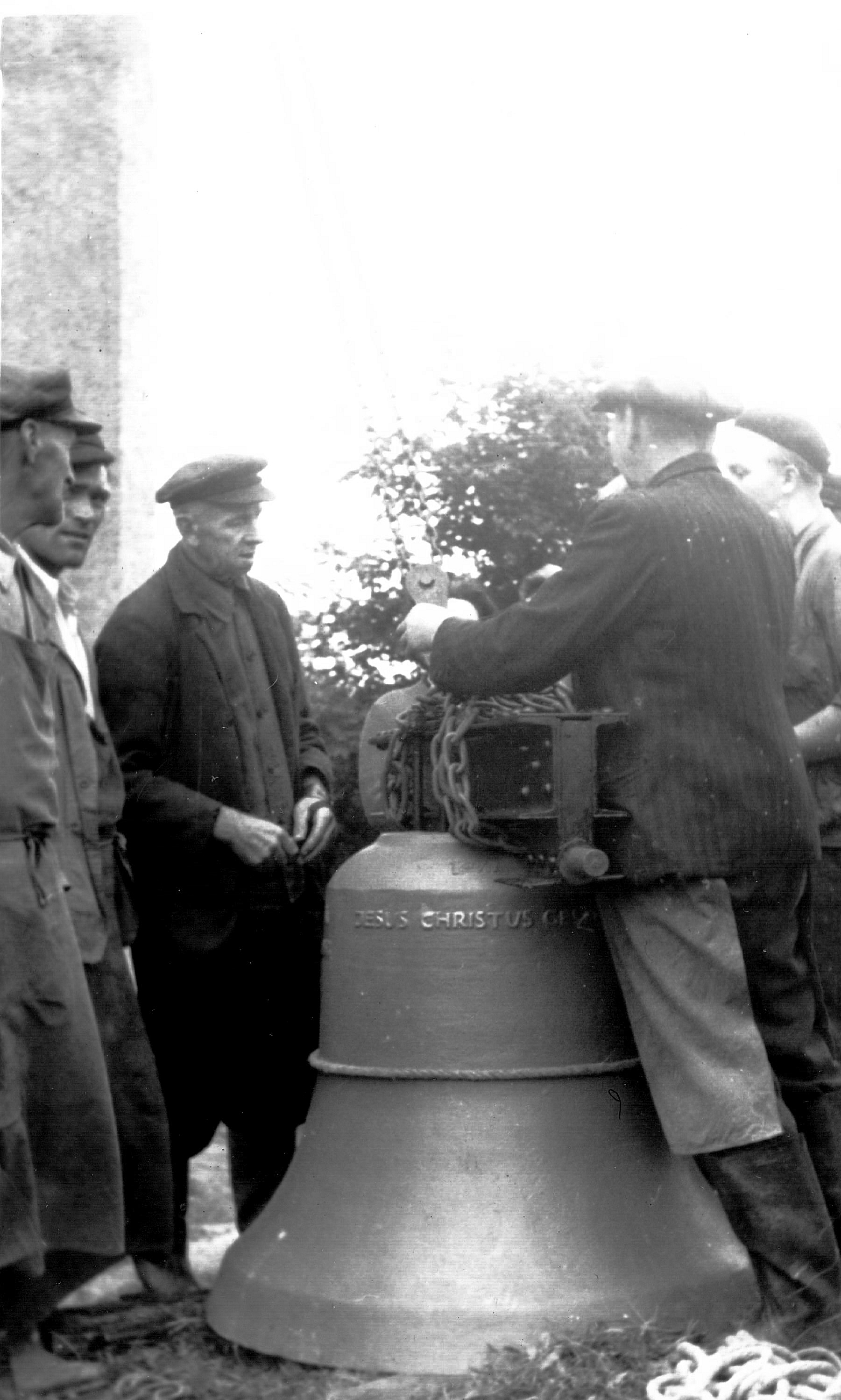 Die neuen Glocken werden wieder eingeweiht. Wärend des Krieges war nur noch eine Glocke im Turm: Die Kindtaufsglocke.