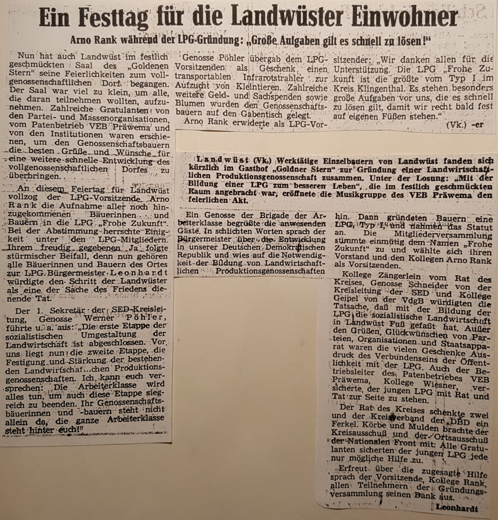 Die LPG vom Typ 1 ist am 05.09.1959 gegegründet und alle Bauern sind Mitglied, nach vielen Diskussionen und mehr oder weniger freiwillig.