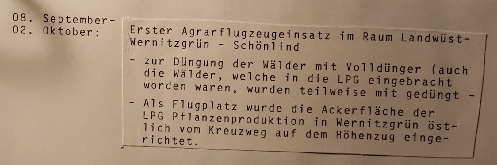 Aktennotiz zum Einsatz von Agrarflugzeugen September bis Oktober 1978 zur Düngung der Wälder