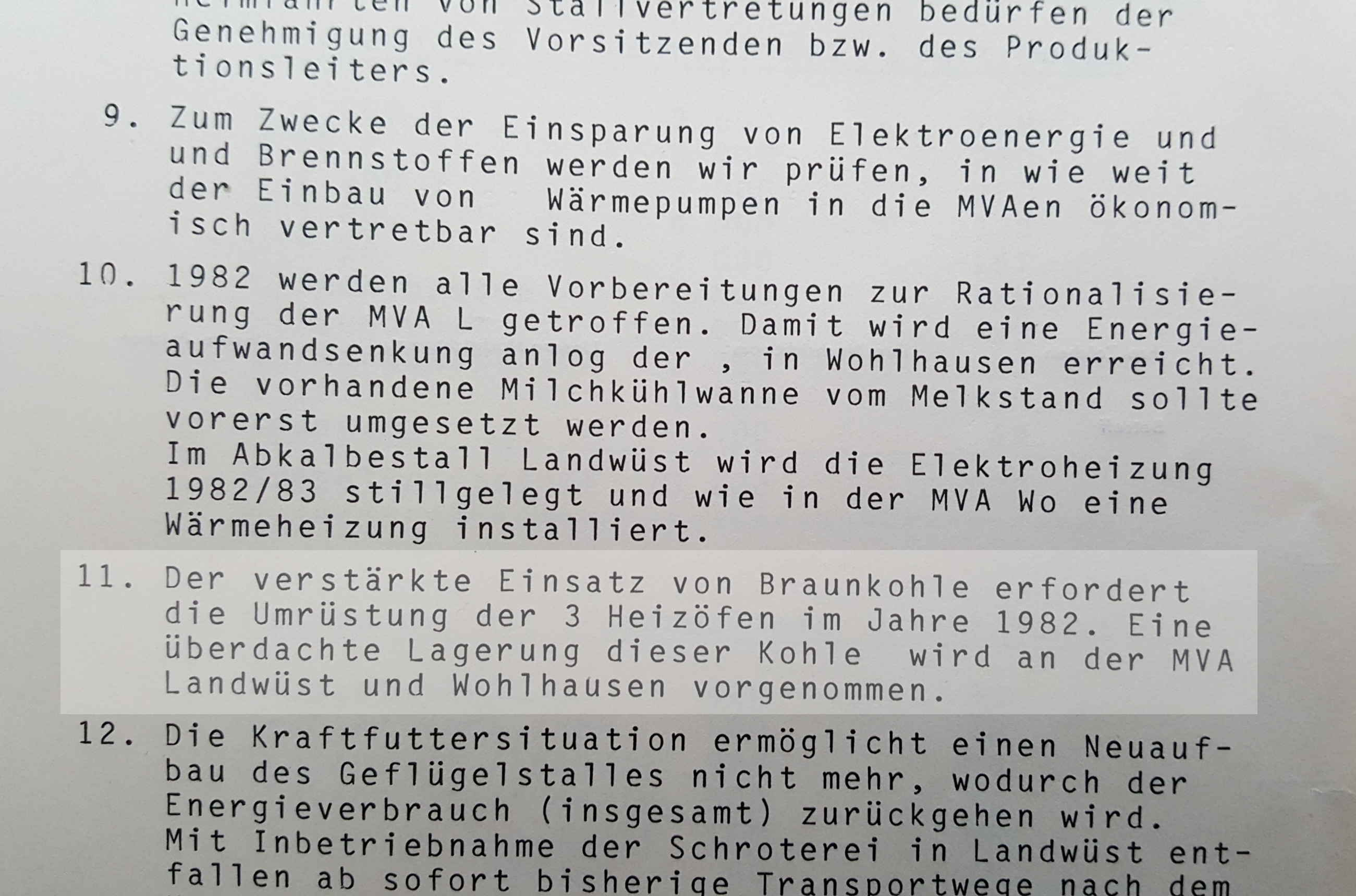 Protokoll: In der LPG wird beschlossen, in den nächsten Jahren die Heizung auf Braunkohle umzustellen
