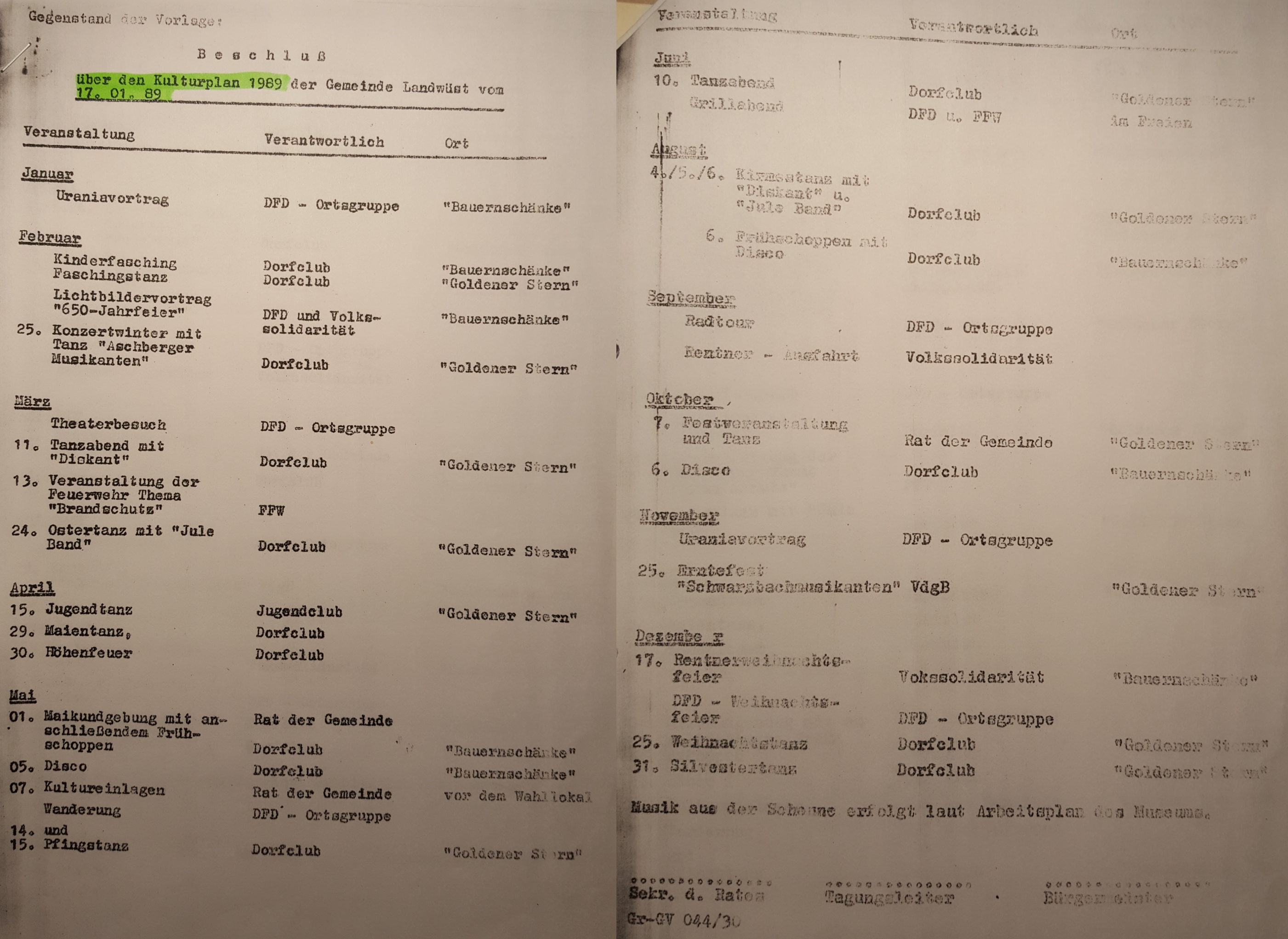 Plan zu allen Veranstaltungen des Jahres 1989, musste vom Sekretär des Rates des Kreises bestätigt werden.