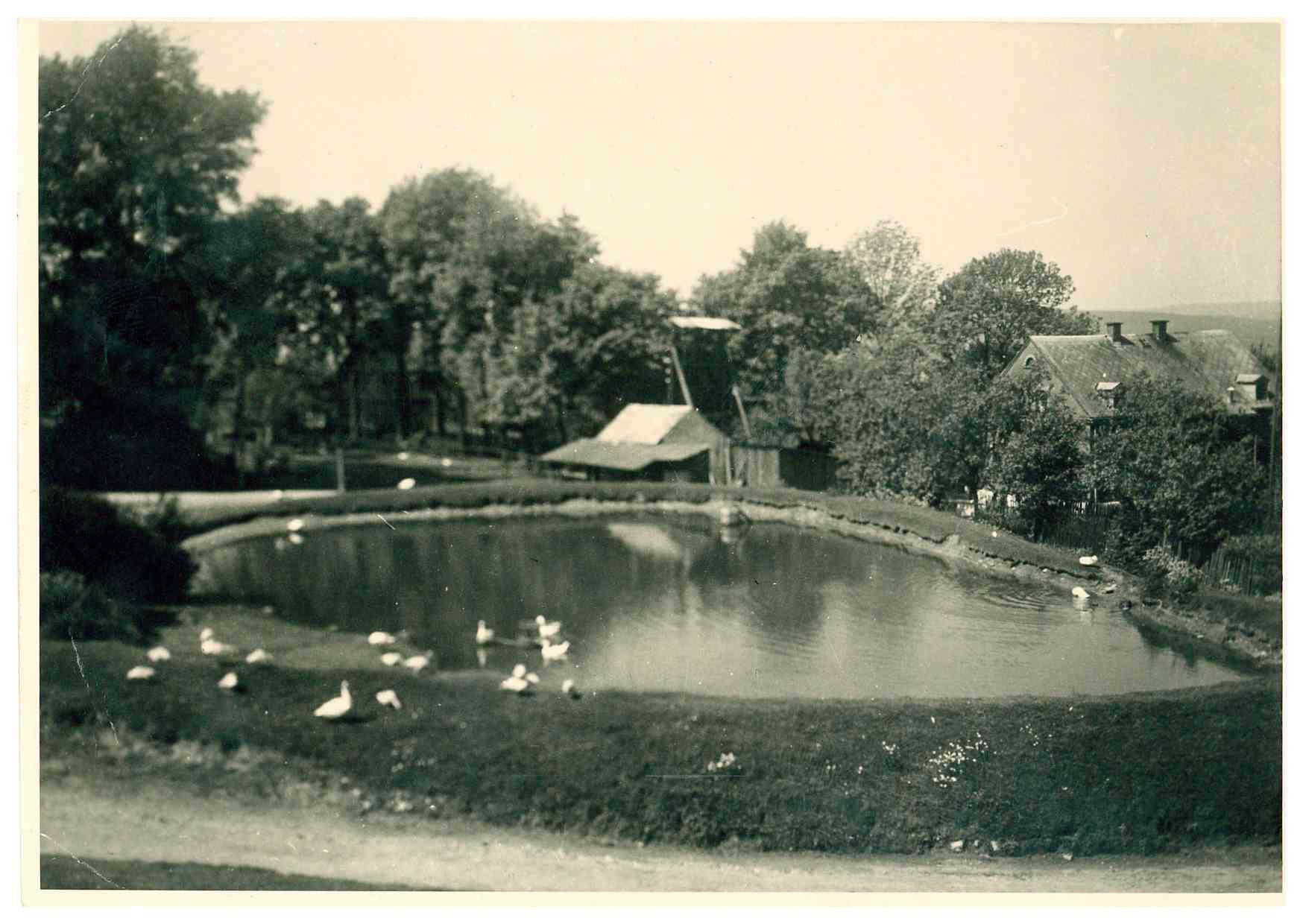 Der Schulteich mit Enten vor dem Feuerwehrdepot.