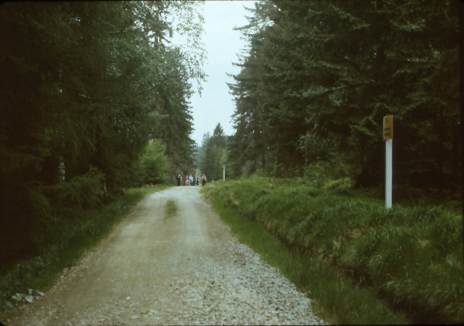 Steiniger Weg an der Grenze entlang Richtung Wernitzgrün, Grenzschilder, Spaziergänger