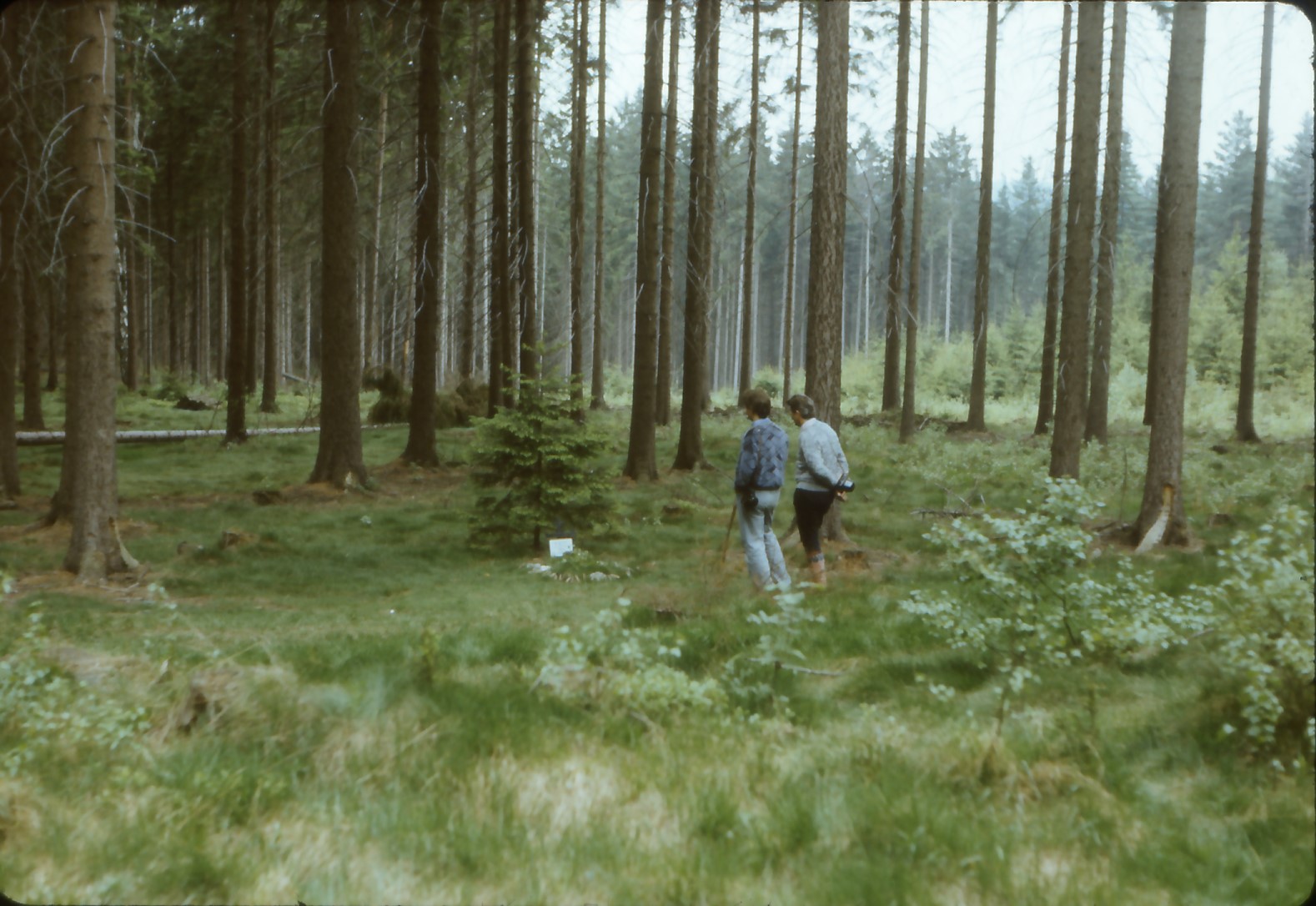 Das Sandmanngrab ist 1988 am Rande eines Hochwaldes zu finden. Hinter ihm steht ein kleiner Tannenbaum.