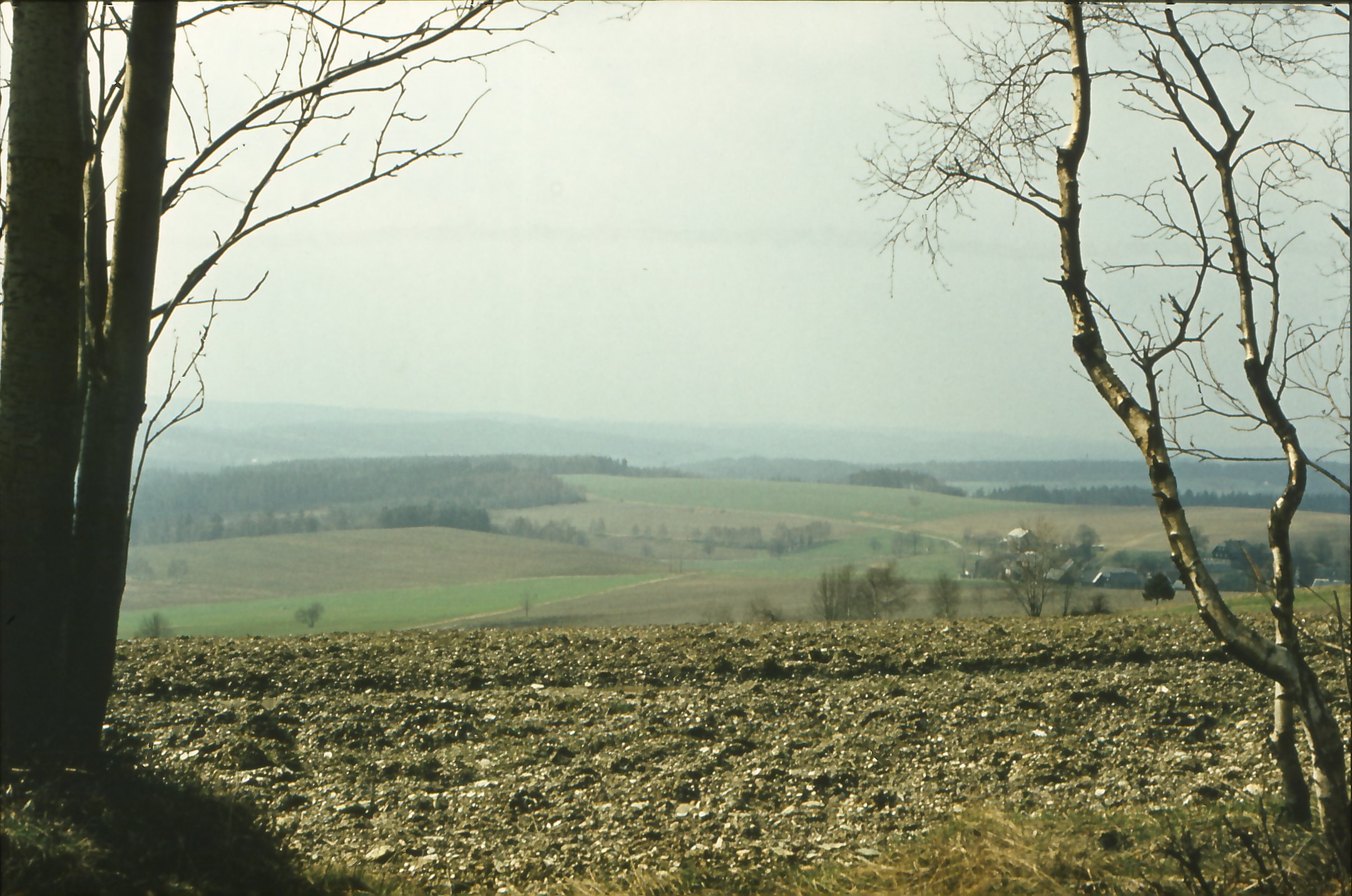 Blick über das geackerte Feld vom Kammweg Bmit Blick in Richtung Nordwesten, in Richtung Taiga und Neubau.