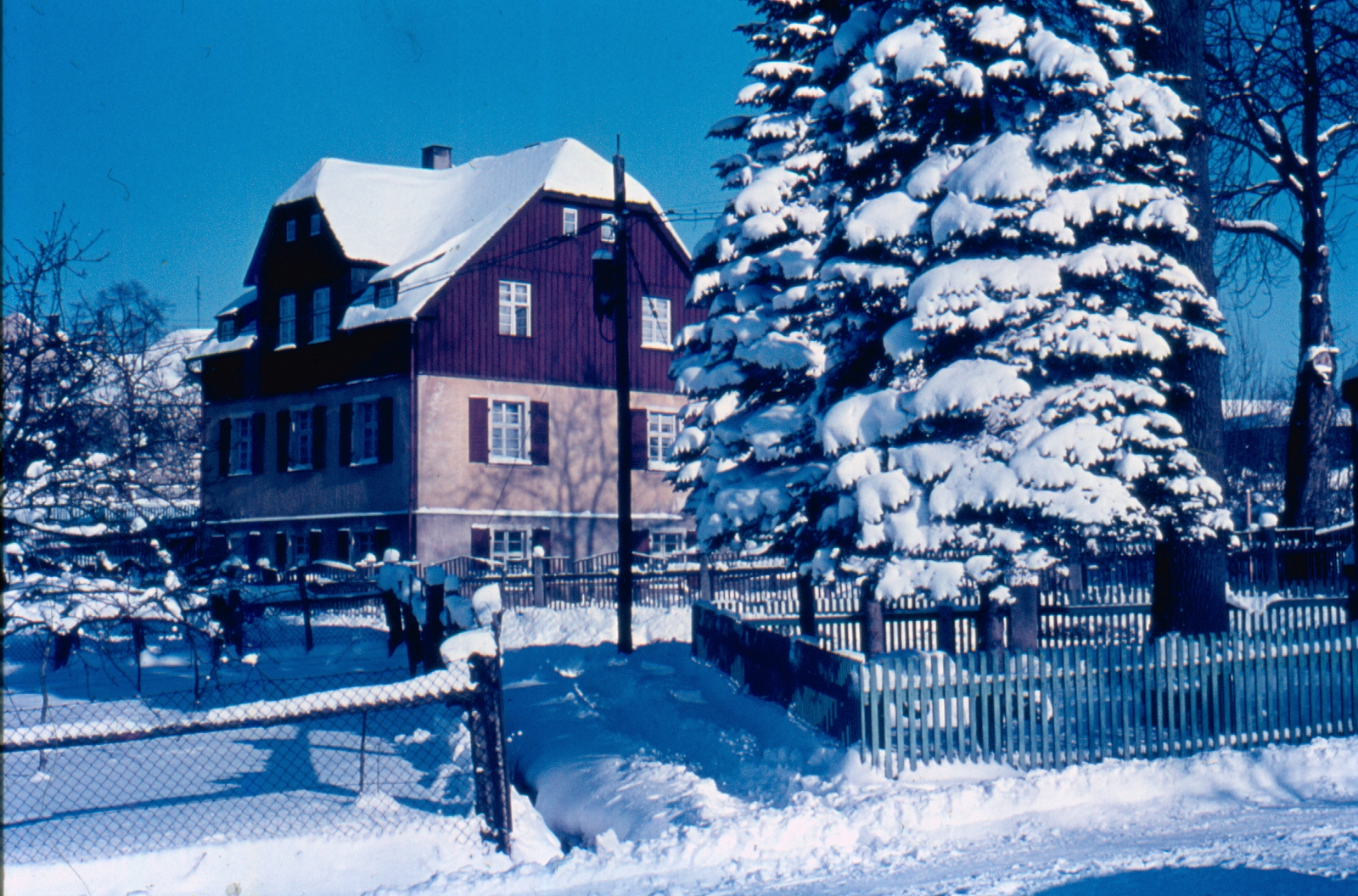 Zäune der Gärten am Kriegerdenkmal, vor der Straßenverbreiterung und dem Bau des Bushäuschens.