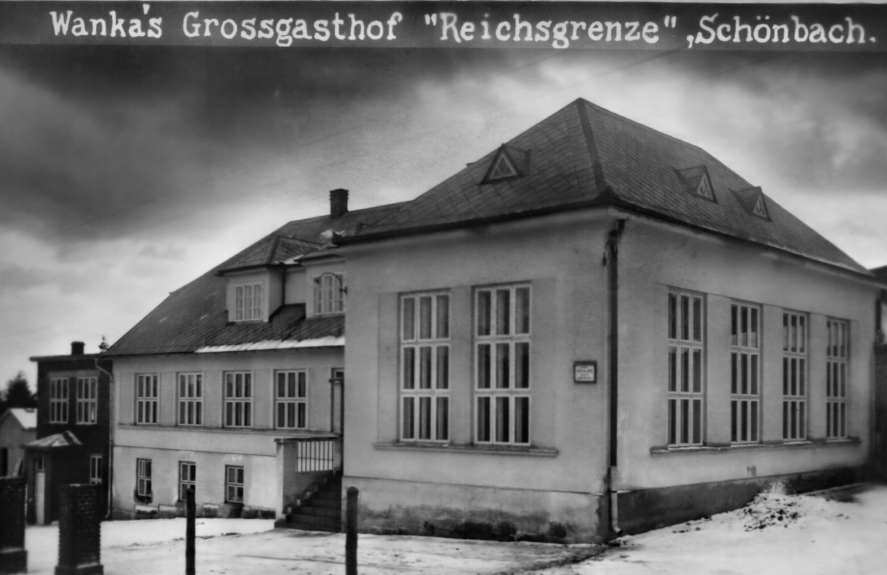 Der Großgasthof war weit bekannt, viele Landwüster kamen zum Tanz hier her. Das Gebäude war im 2. Weltkrieg eine Rüstungsfabrik und wurde nach 1945 mitsamt einer ganzen Siedlung gesprengt. Heute sind nur noch ein paar Treppen zu sehen,