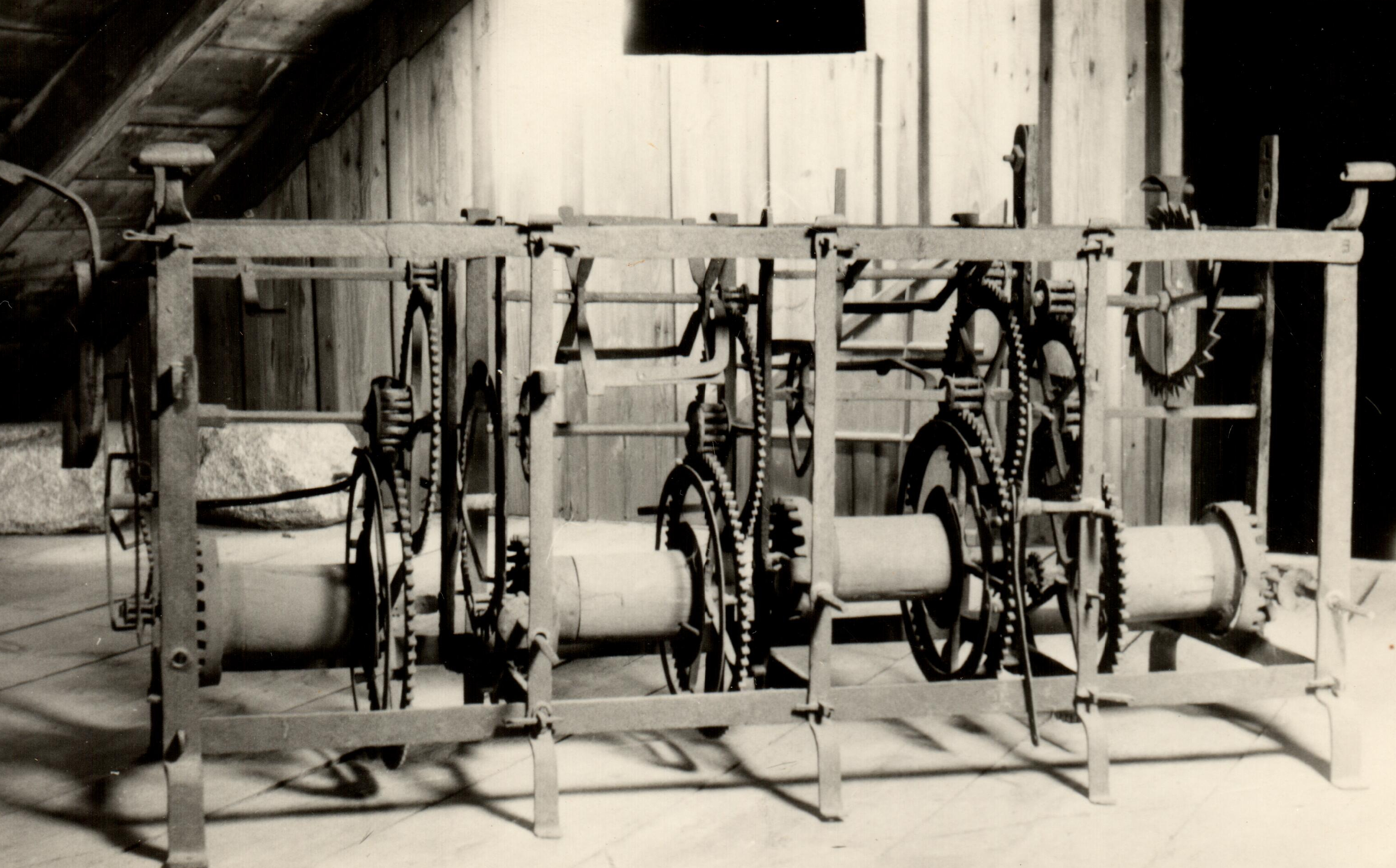 Das alte mechanische Uhrwerk, vom Rathaus-Uhrmacher Zacharias aus Leipzig gebaut und 1872 in Betrieb genommen.