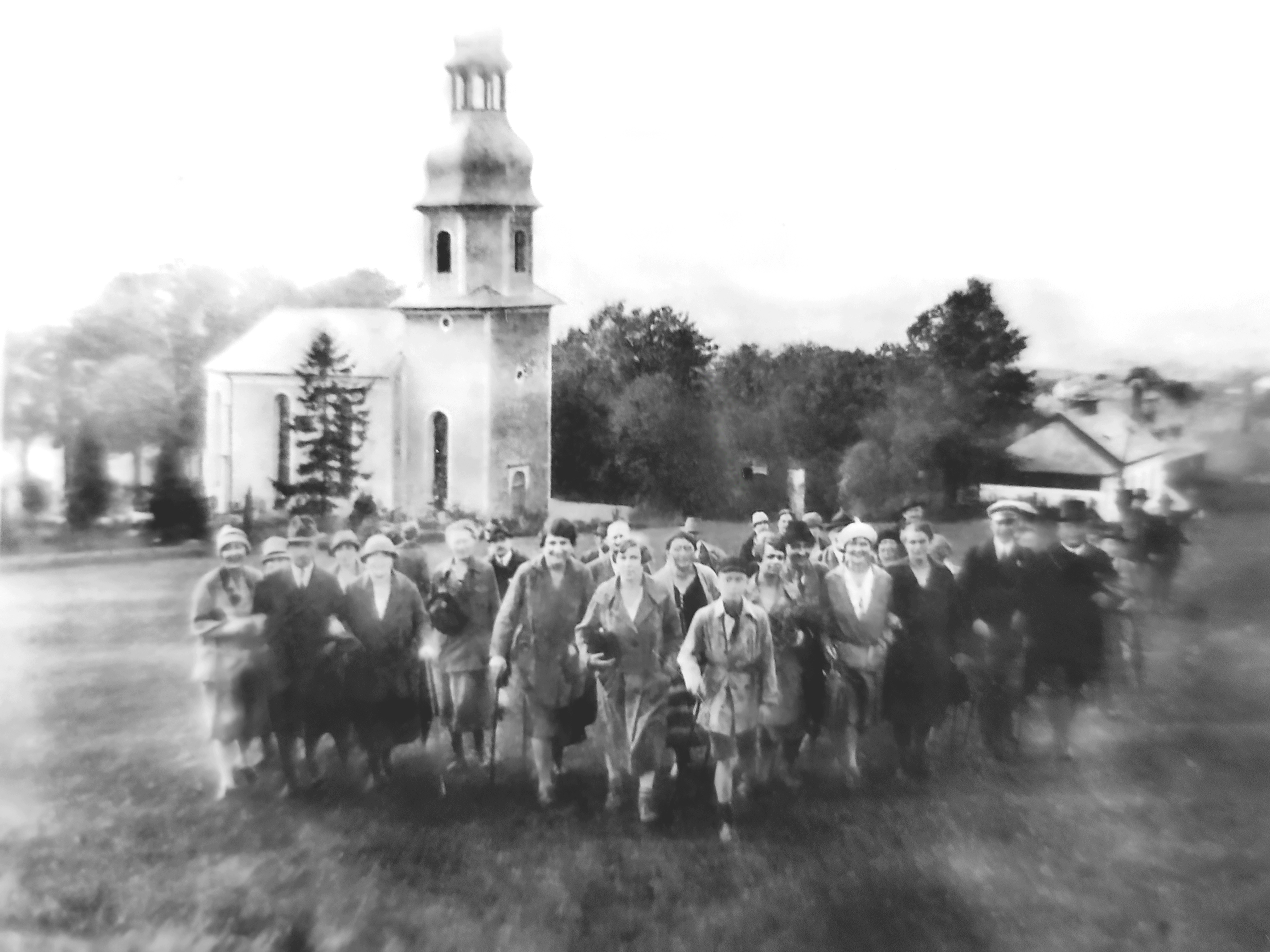 Eine Menschengruppe auf dem Weg zum Wirtsberggipfel